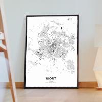 Wähle Farben und Layouts, die perfekt zu dir passen. Ob als klassische Karte in schwarz-weiß oder in modernen Farben. Bei Cartida kannst du ein Design in deinen Lieblingsfarben wählen. Erstelle eine Variante von Niort, die perfekt zu dir und deiner Wohnung passt.