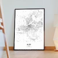 Bilder, die Geschichten erzählen über Reisen, Liebe und Erinnerungen. Wir bei Cartida haben deine Stadtkarte von Albi in Occitanie, Frankreich. Dargestellt als Schwarzplan mit Gebäuden oder als Minimal City Map mit filigranen Straßennetz.