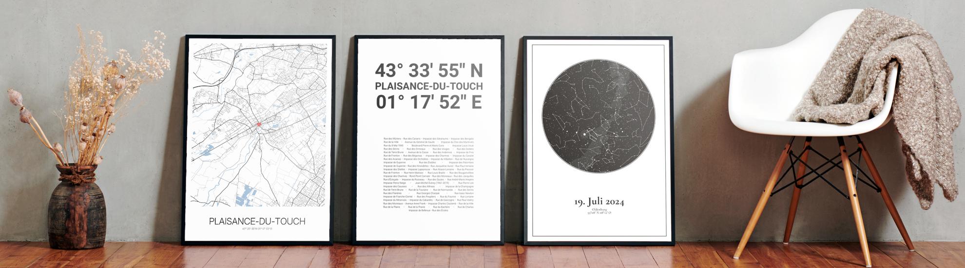Wähle Farben und Layouts, die perfekt zu dir passen. Ob als klassische Karte in schwarz-weiß oder in modernen Farben. Bei Cartida kannst du ein Design in deinen Lieblingsfarben wählen. Erstelle eine Variante von Plaisance-du-Touch, die perfekt zu dir und deiner Wohnung passt.