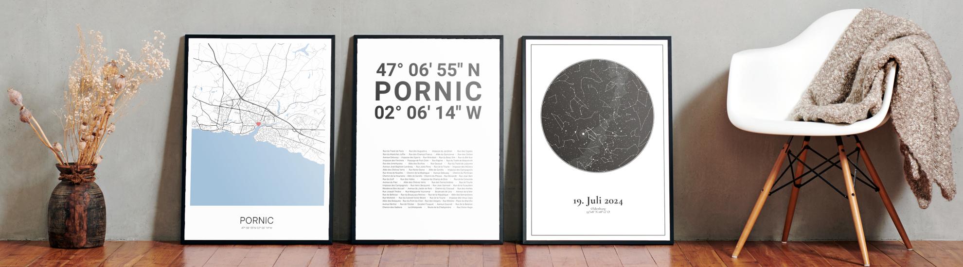 Wähle Farben und Layouts, die perfekt zu dir passen. Ob als klassische Karte in schwarz-weiß oder in modernen Farben. Bei Cartida kannst du ein Design in deinen Lieblingsfarben wählen. Erstelle eine Variante von Pornic, die perfekt zu dir und deiner Wohnung passt.