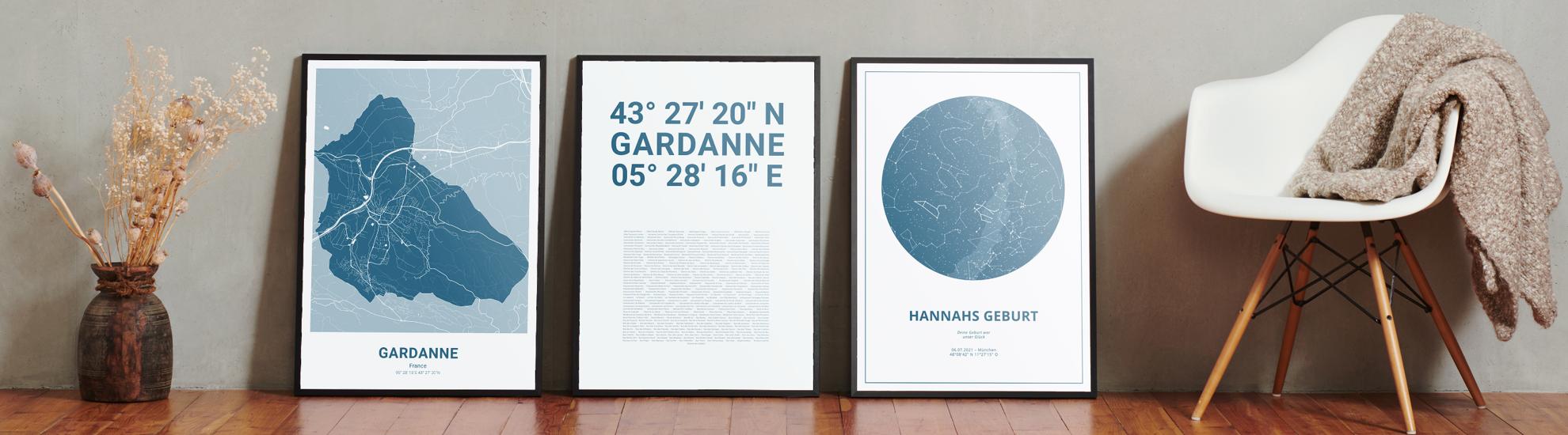 Wähle Farben und Layouts, die perfekt zu dir passen. Ob als klassische Karte in schwarz-weiß oder in modernen Farben. Bei Cartida kannst du ein Design in deinen Lieblingsfarben wählen. Erstelle eine Variante von Gardanne, die perfekt zu dir und deiner Wohnung passt.