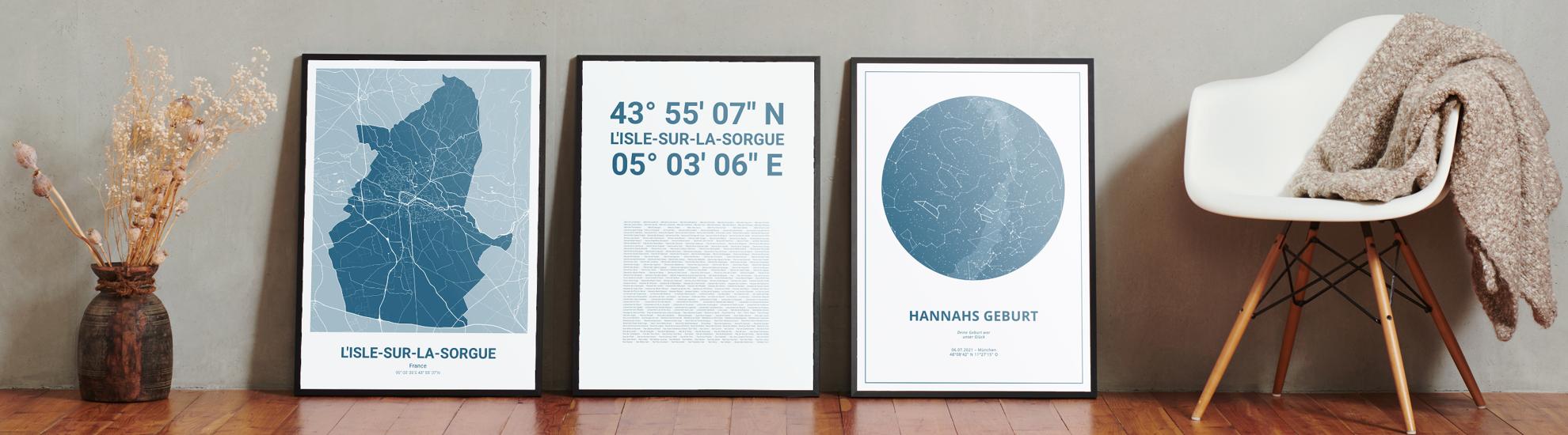 Zahlen, die die Welt bedeuten. Erstelle jetzt dein persönliches Koordinaten-Kunstwerk von deiner Lieblingsstadt. Entscheide selbst, ob Stadtteile, Straßen oder ganz eigene Texte abgedruckt werden. Perfekt als Geschenk zum Einzug oder für die eigenen vier Wände.