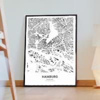 Bilder, die Geschichten erzählen über Reisen, Liebe und Erinnerungen. Wir bei Cartida haben deine Stadtkarte von Hamburg. Dargestellt als Schwarzplan mit Gebäuden oder als Minimal City Map mit filigranen Straßennetz.