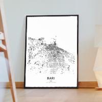 Bilder, die Geschichten erzählen über Reisen, Liebe und Erinnerungen. Wir bei Cartida haben deine Stadtkarte von Bari in Puglia, Italien. Dargestellt als Schwarzplan mit Gebäuden oder als Minimal City Map mit filigranen Straßennetz.