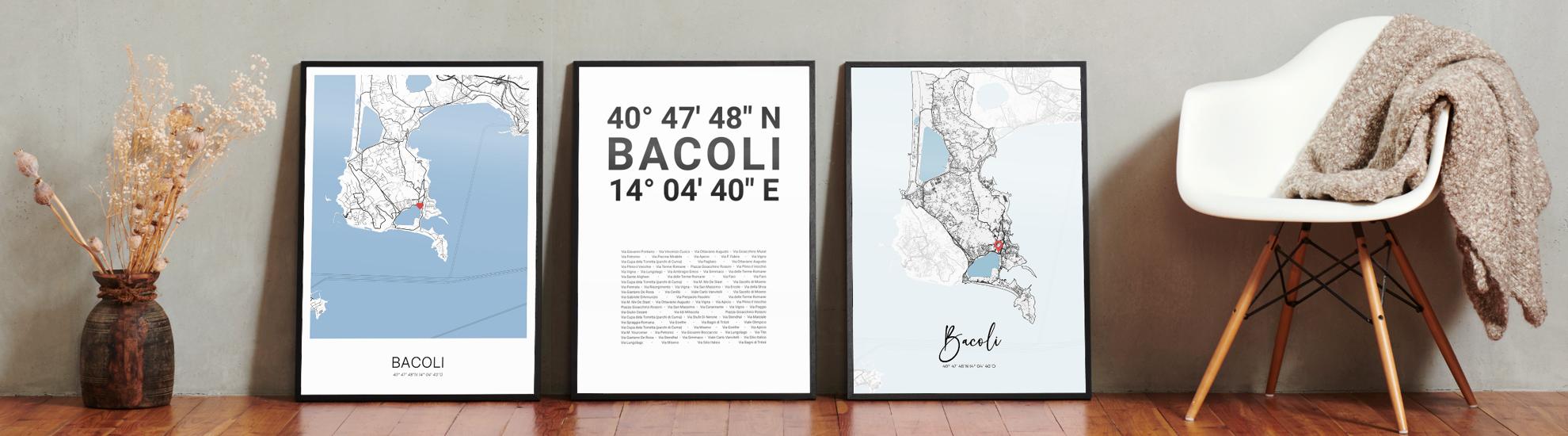 Bilder, die Geschichten erzählen über Reisen, Liebe und Erinnerungen. Wir bei Cartida haben deine Stadtkarte von Bacoli in Campania, Italien. Dargestellt als Schwarzplan mit Gebäuden oder als Minimal City Map mit filigranen Straßennetz.