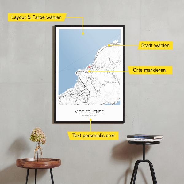 Wähle Farben und Layouts, die perfekt zu dir passen. Ob als klassische Karte in schwarz-weiß oder in modernen Farben. Bei Cartida kannst du ein Design in deinen Lieblingsfarben wählen. Erstelle eine Variante von Vico Equense, die perfekt zu dir und deiner Wohnung passt.