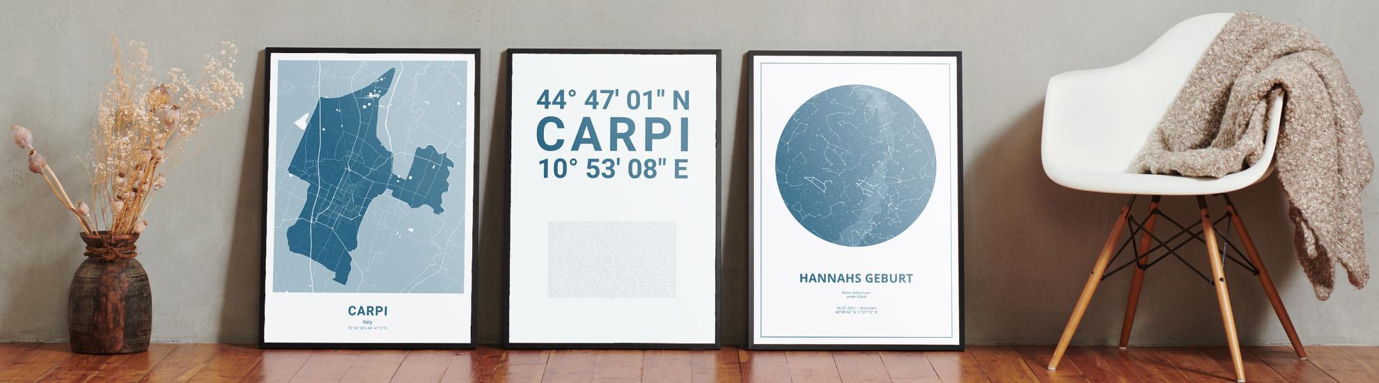 Wähle Farben und Layouts, die perfekt zu dir passen. Ob als klassische Karte in schwarz-weiß oder in modernen Farben. Bei Cartida kannst du ein Design in deinen Lieblingsfarben wählen. Erstelle eine Variante von Carpi, die perfekt zu dir und deiner Wohnung passt.