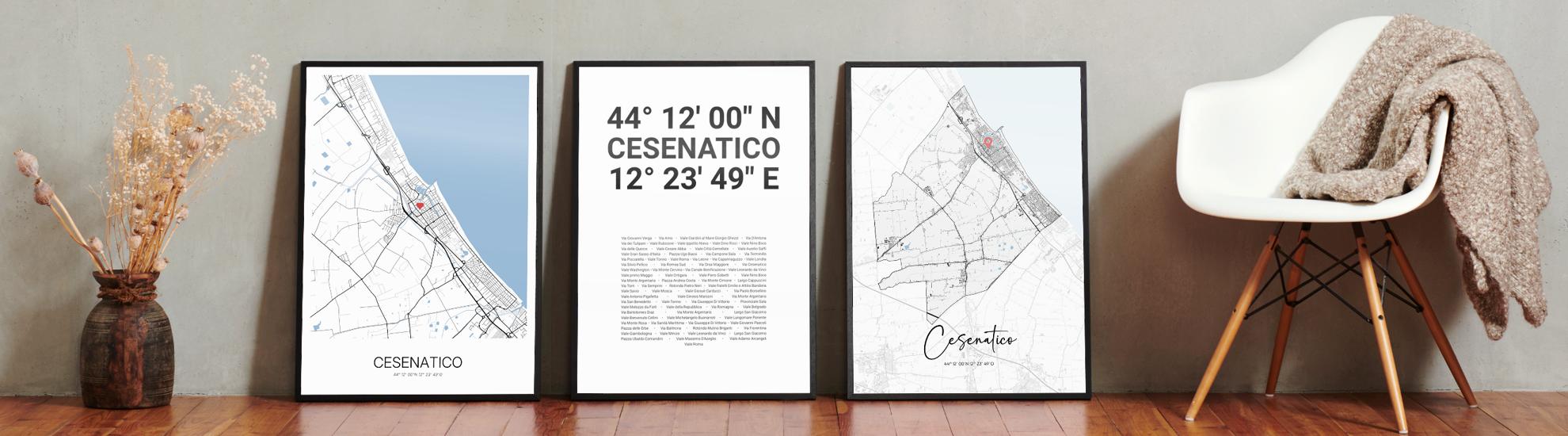 Wähle Farben und Layouts, die perfekt zu dir passen. Ob als klassische Karte in schwarz-weiß oder in modernen Farben. Bei Cartida kannst du ein Design in deinen Lieblingsfarben wählen. Erstelle eine Variante von Cesenatico, die perfekt zu dir und deiner Wohnung passt.