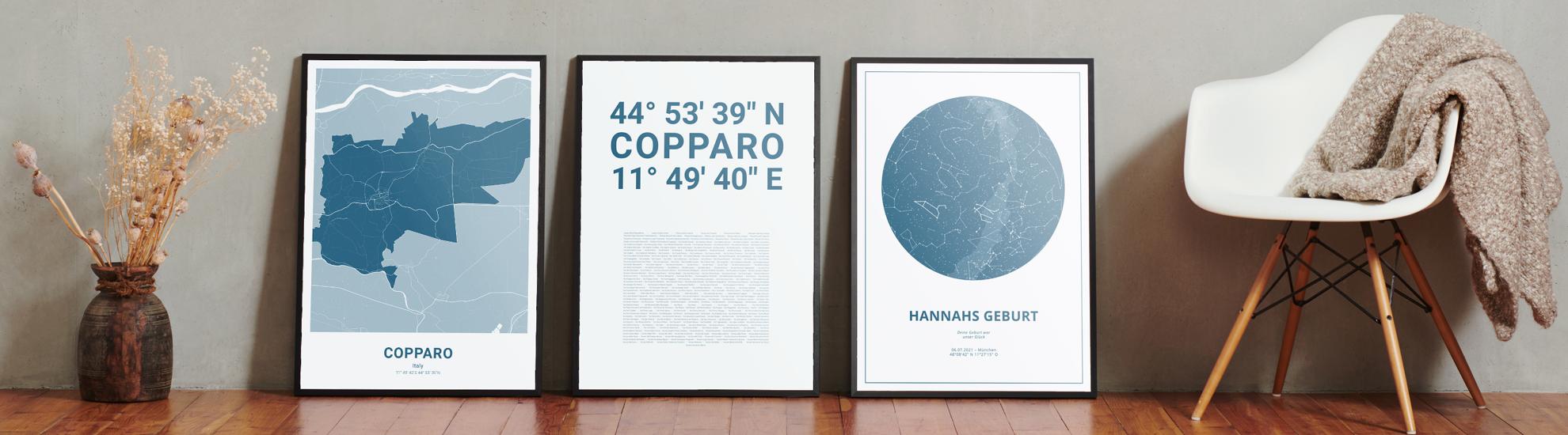 Zahlen, die die Welt bedeuten. Erstelle jetzt dein persönliches Koordinaten-Kunstwerk von deiner Lieblingsstadt. Entscheide selbst, ob Stadtteile, Straßen oder ganz eigene Texte abgedruckt werden. Perfekt als Geschenk zum Einzug oder für die eigenen vier Wände.