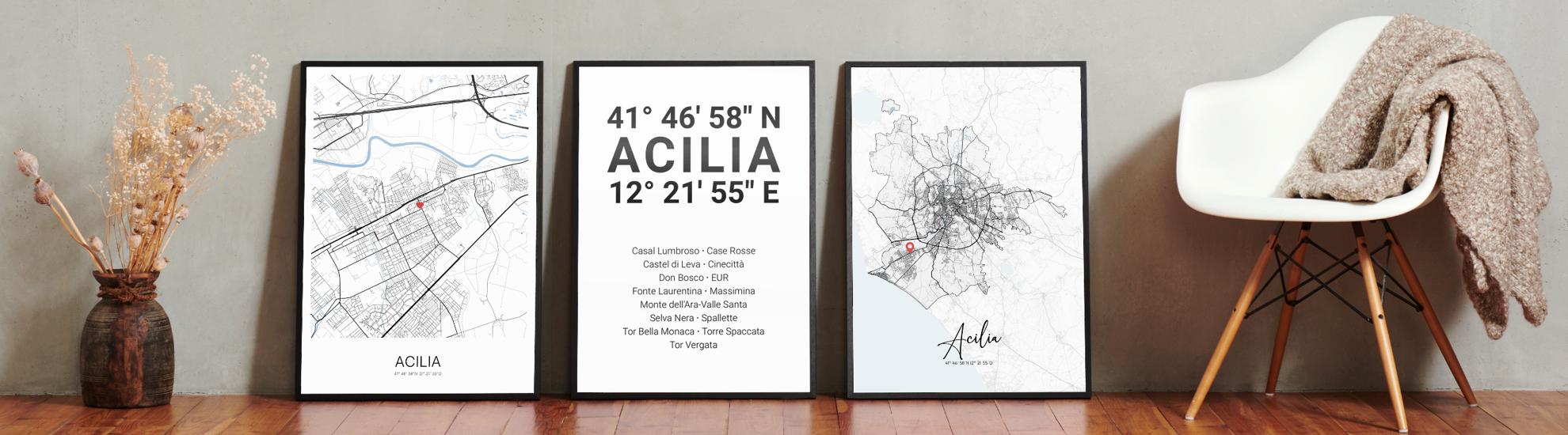 Bilder, die Geschichten erzählen über Reisen, Liebe und Erinnerungen. Wir bei Cartida haben deine Stadtkarte von Acilia in Lazio, Italien. Dargestellt als Schwarzplan mit Gebäuden oder als Minimal City Map mit filigranen Straßennetz.