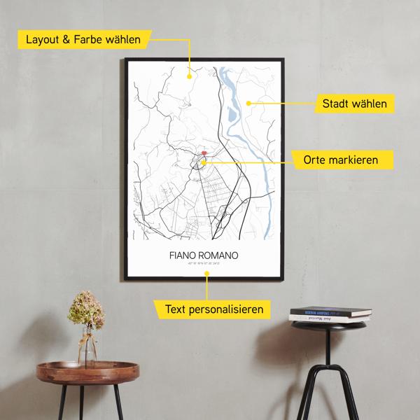 Wähle Farben und Layouts, die perfekt zu dir passen. Ob als klassische Karte in schwarz-weiß oder in modernen Farben. Bei Cartida kannst du ein Design in deinen Lieblingsfarben wählen. Erstelle eine Variante von Fiano Romano, die perfekt zu dir und deiner Wohnung passt.