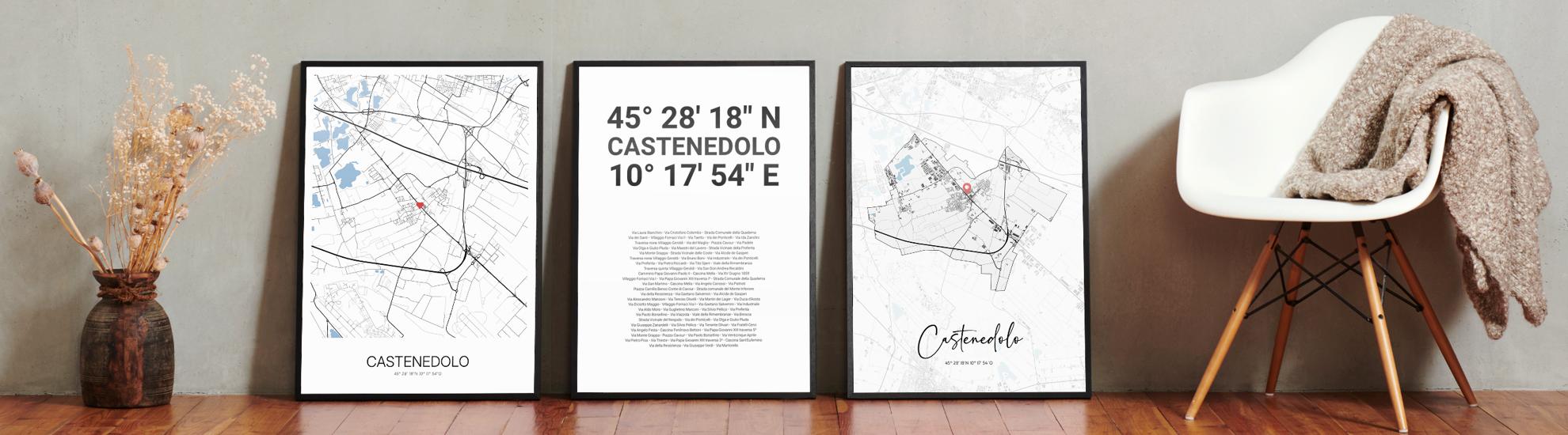 Wähle Farben und Layouts, die perfekt zu dir passen. Ob als klassische Karte in schwarz-weiß oder in modernen Farben. Bei Cartida kannst du ein Design in deinen Lieblingsfarben wählen. Erstelle eine Variante von Castenedolo, die perfekt zu dir und deiner Wohnung passt.