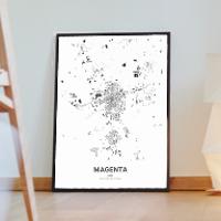 Bilder, die Geschichten erzählen über Reisen, Liebe und Erinnerungen. Wir bei Cartida haben deine Stadtkarte von Magenta in Lombardia, Italien. Dargestellt als Schwarzplan mit Gebäuden oder als Minimal City Map mit filigranen Straßennetz.