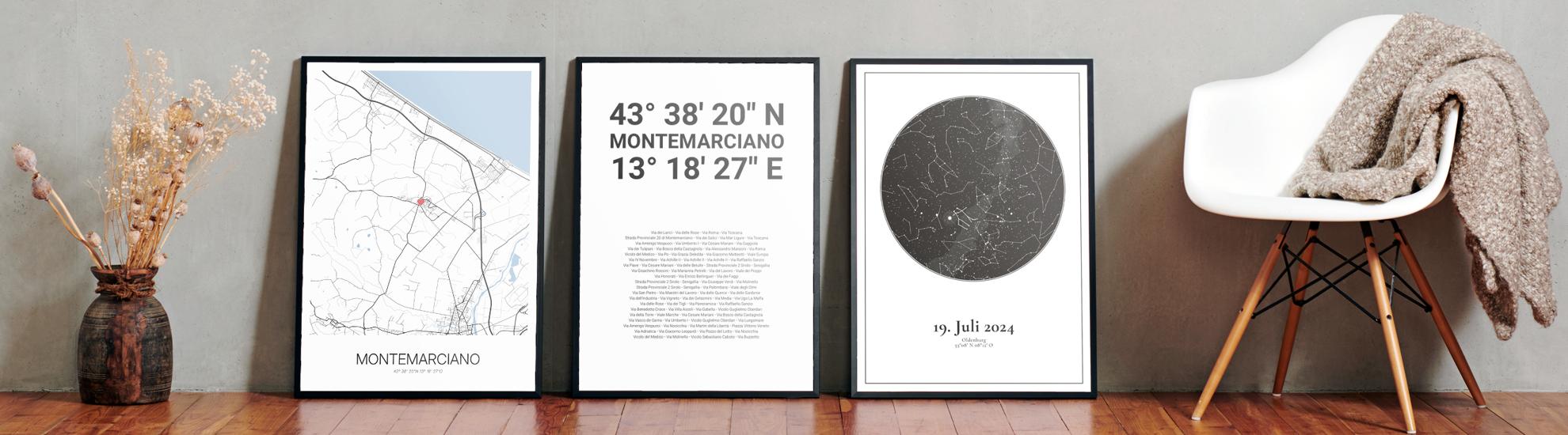 Wähle Farben und Layouts, die perfekt zu dir passen. Ob als klassische Karte in schwarz-weiß oder in modernen Farben. Bei Cartida kannst du ein Design in deinen Lieblingsfarben wählen. Erstelle eine Variante von Montemarciano, die perfekt zu dir und deiner Wohnung passt.