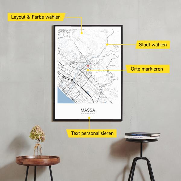 Wähle Farben und Layouts, die perfekt zu dir passen. Ob als klassische Karte in schwarz-weiß oder in modernen Farben. Bei Cartida kannst du ein Design in deinen Lieblingsfarben wählen. Erstelle eine Variante von Massa, die perfekt zu dir und deiner Wohnung passt.