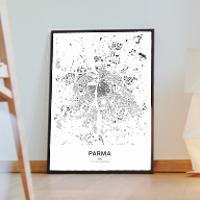 Bilder, die Geschichten erzählen über Reisen, Liebe und Erinnerungen. Wir bei Cartida haben deine Stadtkarte von Parma in Emilia-Romagna, Italien. Dargestellt als Schwarzplan mit Gebäuden oder als Minimal City Map mit filigranen Straßennetz.