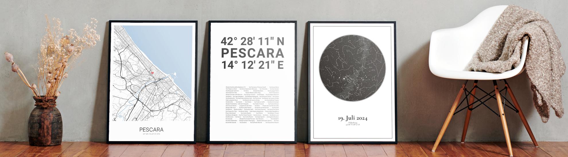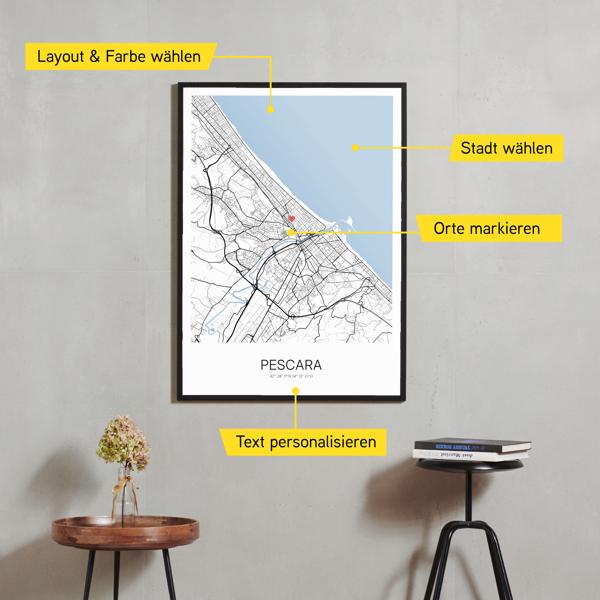 Wähle Farben und Layouts, die perfekt zu dir passen. Ob als klassische Karte in schwarz-weiß oder in modernen Farben. Bei Cartida kannst du ein Design in deinen Lieblingsfarben wählen. Erstelle eine Variante von Pescara, die perfekt zu dir und deiner Wohnung passt.