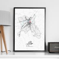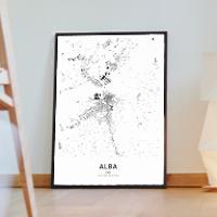 Bilder, die Geschichten erzählen über Reisen, Liebe und Erinnerungen. Wir bei Cartida haben deine Stadtkarte von Alba in Piemonte, Italien. Dargestellt als Schwarzplan mit Gebäuden oder als Minimal City Map mit filigranen Straßennetz.
