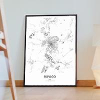 Bilder, die Geschichten erzählen über Reisen, Liebe und Erinnerungen. Wir bei Cartida haben deine Stadtkarte von Rovigo in Veneto, Italien. Dargestellt als Schwarzplan mit Gebäuden oder als Minimal City Map mit filigranen Straßennetz.