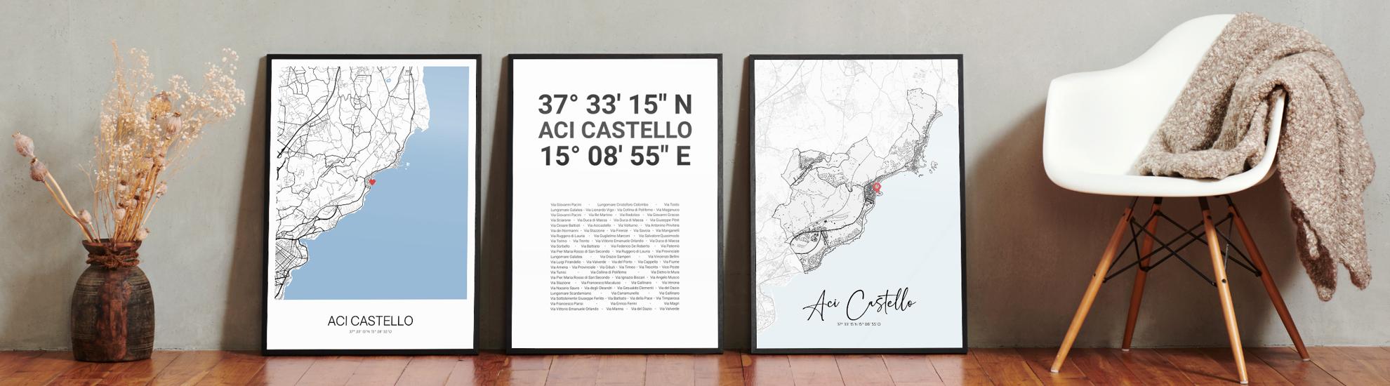 Bilder, die Geschichten erzählen über Reisen, Liebe und Erinnerungen. Wir bei Cartida haben deine Stadtkarte von Aci Castello in Sicilia, Italien. Dargestellt als Schwarzplan mit Gebäuden oder als Minimal City Map mit filigranen Straßennetz.