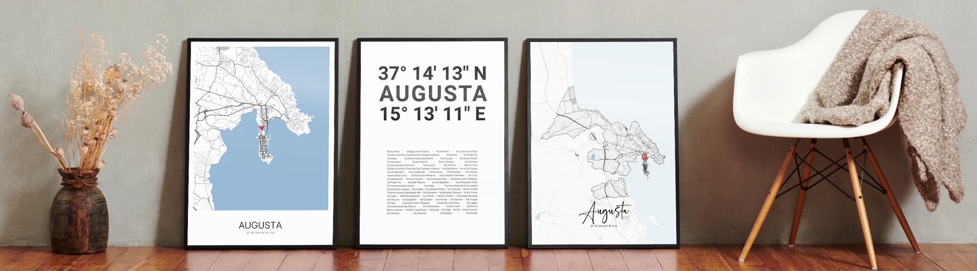 Bilder, die Geschichten erzählen über Reisen, Liebe und Erinnerungen. Wir bei Cartida haben deine Stadtkarte von Augusta in Sicilia, Italien. Dargestellt als Schwarzplan mit Gebäuden oder als Minimal City Map mit filigranen Straßennetz.