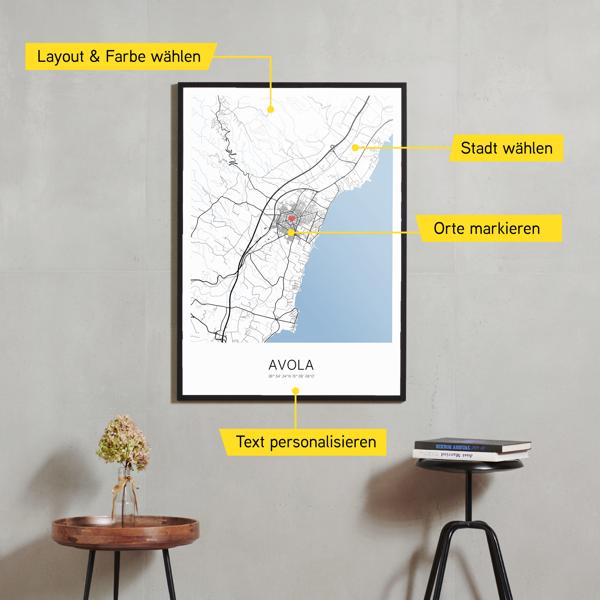 Wähle Farben und Layouts, die perfekt zu dir passen. Ob als klassische Karte in schwarz-weiß oder in modernen Farben. Bei Cartida kannst du ein Design in deinen Lieblingsfarben wählen. Erstelle eine Variante von Avola, die perfekt zu dir und deiner Wohnung passt.
