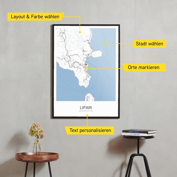 Wähle Farben und Layouts, die perfekt zu dir passen. Ob als klassische Karte in schwarz-weiß oder in modernen Farben. Bei Cartida kannst du ein Design in deinen Lieblingsfarben wählen. Erstelle eine Variante von Lipari, die perfekt zu dir und deiner Wohnung passt.