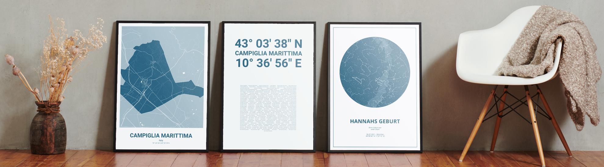 Wähle Farben und Layouts, die perfekt zu dir passen. Ob als klassische Karte in schwarz-weiß oder in modernen Farben. Bei Cartida kannst du ein Design in deinen Lieblingsfarben wählen. Erstelle eine Variante von Campiglia Marittima, die perfekt zu dir und deiner Wohnung passt.