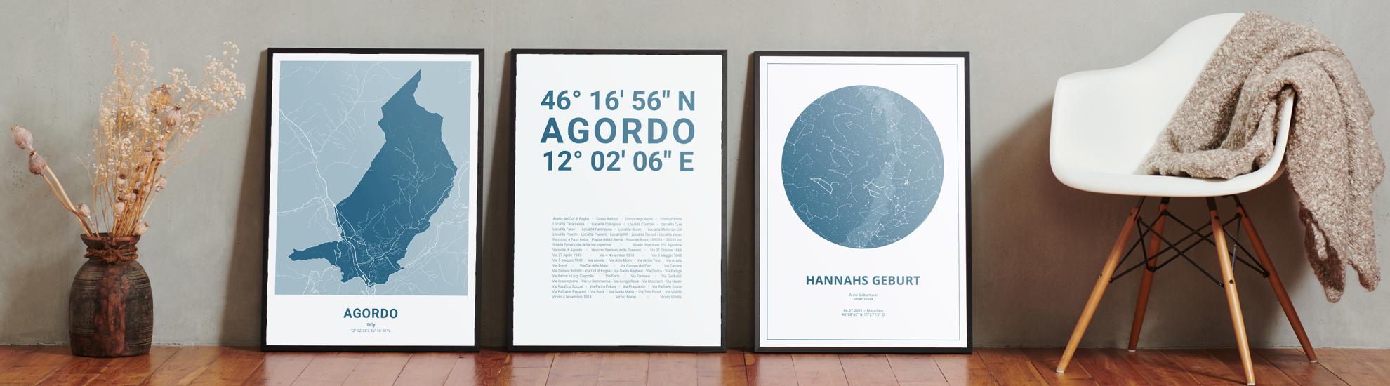 Zahlen, die die Welt bedeuten. Erstelle jetzt dein persönliches Koordinaten-Kunstwerk von deiner Lieblingsstadt. Entscheide selbst, ob Stadtteile, Straßen oder ganz eigene Texte abgedruckt werden. Perfekt als Geschenk zum Einzug oder für die eigenen vier Wände.