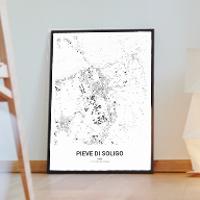 Bilder, die Geschichten erzählen über Reisen, Liebe und Erinnerungen. Wir bei Cartida haben deine Stadtkarte von Pieve di Soligo in Veneto, Italien. Dargestellt als Schwarzplan mit Gebäuden oder als Minimal City Map mit filigranen Straßennetz.