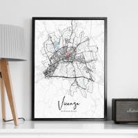 Bilder, die Geschichten erzählen über Reisen, Liebe und Erinnerungen. Wir bei Cartida haben deine Stadtkarte von Vicenza in Veneto, Italien. Dargestellt als Schwarzplan mit Gebäuden oder als Minimal City Map mit filigranen Straßennetz.