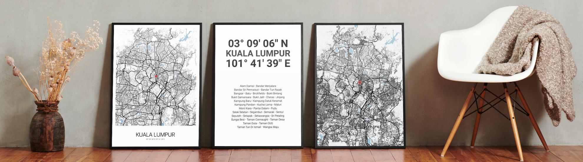 Bilder, die Geschichten erzählen über Reisen, Liebe und Erinnerungen. Wir bei Cartida haben deine Stadtkarte von Kuala Lumpur. Dargestellt als Schwarzplan mit Gebäuden oder als Minimal City Map mit filigranen Straßennetz.
