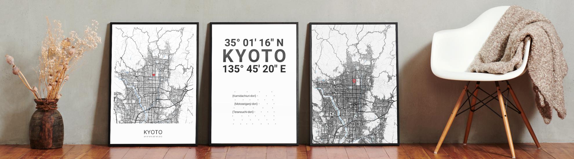 Bilder, die Geschichten erzählen über Reisen, Liebe und Erinnerungen. Wir bei Cartida haben deine Stadtkarte von Kyoto. Dargestellt als Schwarzplan mit Gebäuden oder als Minimal City Map mit filigranen Straßennetz.