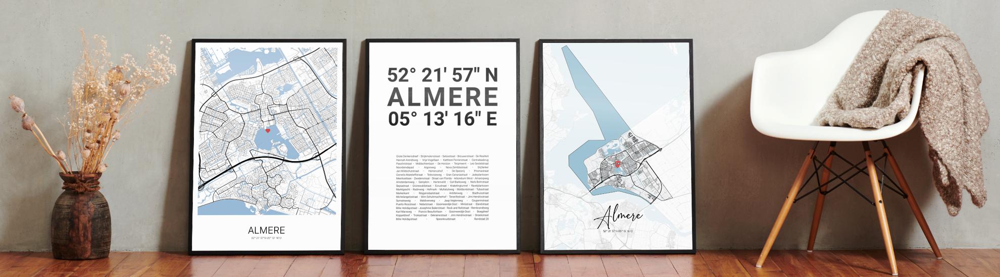 Wähle Farben und Layouts, die perfekt zu dir passen. Ob als klassische Karte in schwarz-weiß oder in modernen Farben. Bei Cartida kannst du ein Design in deinen Lieblingsfarben wählen. Erstelle eine Variante von Almere, die perfekt zu dir und deiner Wohnung passt.