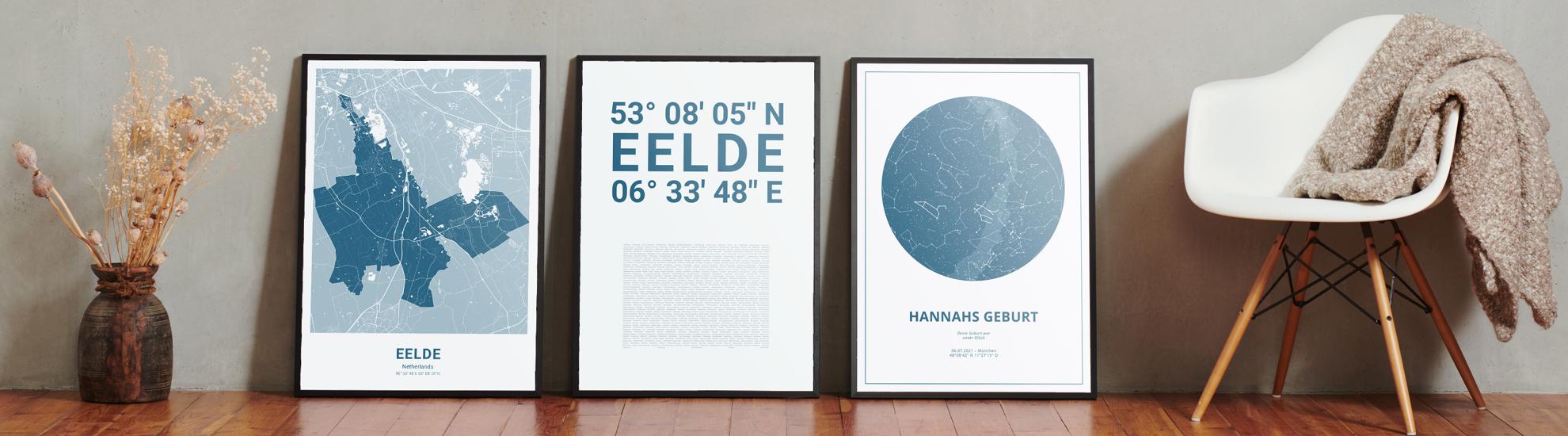 Wähle Farben und Layouts, die perfekt zu dir passen. Ob als klassische Karte in schwarz-weiß oder in modernen Farben. Bei Cartida kannst du ein Design in deinen Lieblingsfarben wählen. Erstelle eine Variante von Eelde, die perfekt zu dir und deiner Wohnung passt.