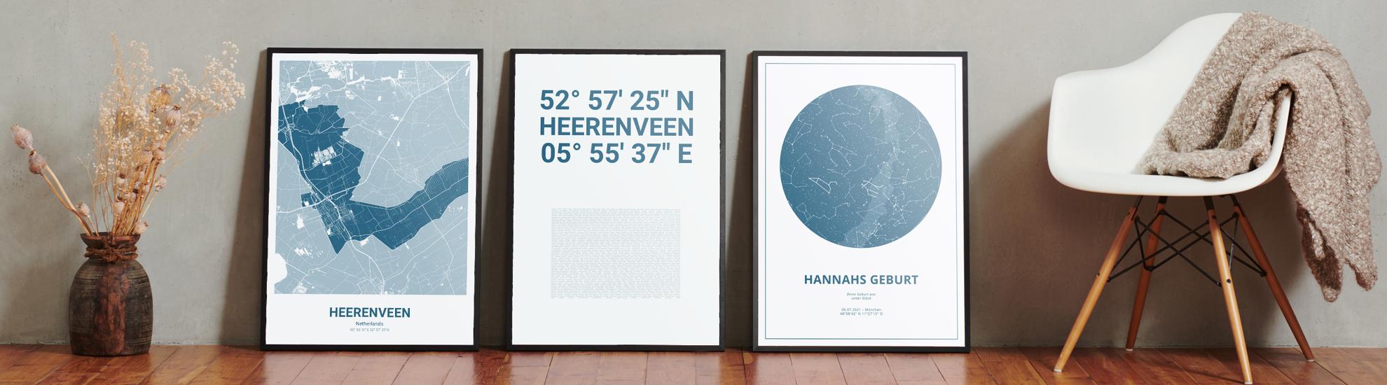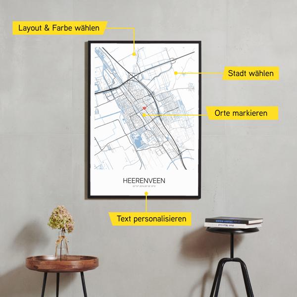 Wähle Farben und Layouts, die perfekt zu dir passen. Ob als klassische Karte in schwarz-weiß oder in modernen Farben. Bei Cartida kannst du ein Design in deinen Lieblingsfarben wählen. Erstelle eine Variante von Heerenveen, die perfekt zu dir und deiner Wohnung passt.