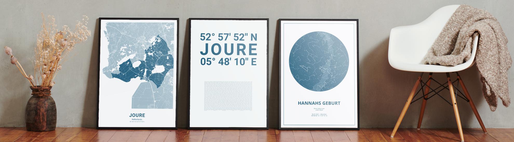 Wähle Farben und Layouts, die perfekt zu dir passen. Ob als klassische Karte in schwarz-weiß oder in modernen Farben. Bei Cartida kannst du ein Design in deinen Lieblingsfarben wählen. Erstelle eine Variante von Joure, die perfekt zu dir und deiner Wohnung passt.
