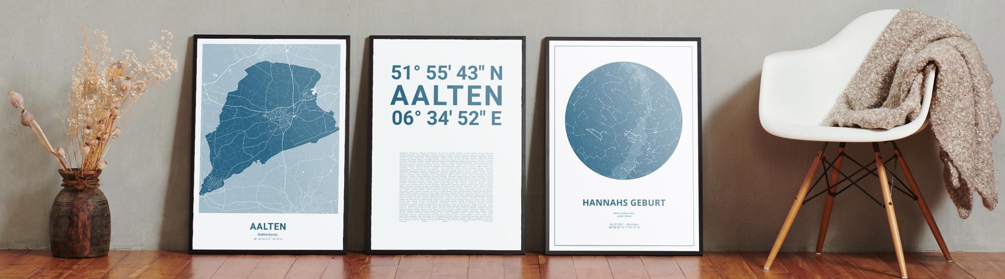 Wähle Farben und Layouts, die perfekt zu dir passen. Ob als klassische Karte in schwarz-weiß oder in modernen Farben. Bei Cartida kannst du ein Design in deinen Lieblingsfarben wählen. Erstelle eine Variante von Aalten, die perfekt zu dir und deiner Wohnung passt.