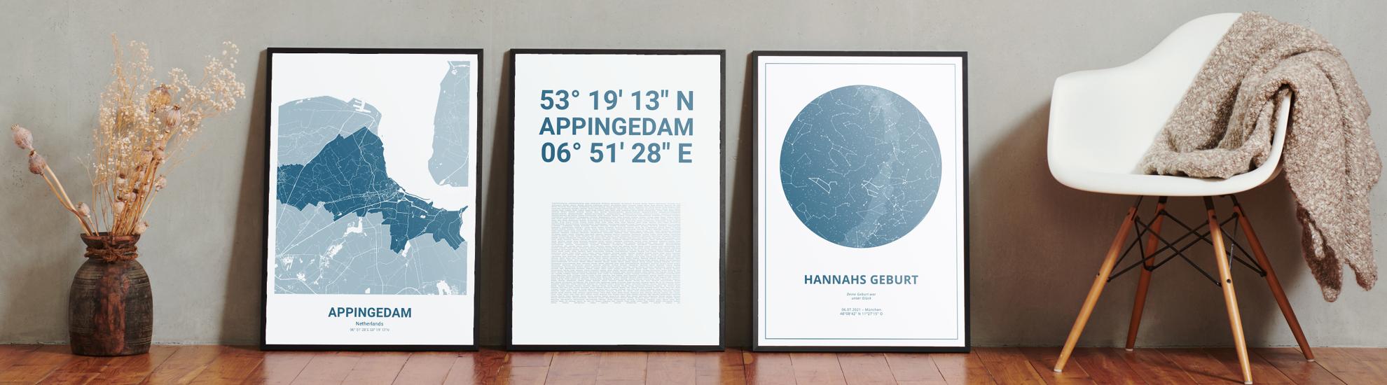 Wähle Farben und Layouts, die perfekt zu dir passen. Ob als klassische Karte in schwarz-weiß oder in modernen Farben. Bei Cartida kannst du ein Design in deinen Lieblingsfarben wählen. Erstelle eine Variante von Appingedam, die perfekt zu dir und deiner Wohnung passt.