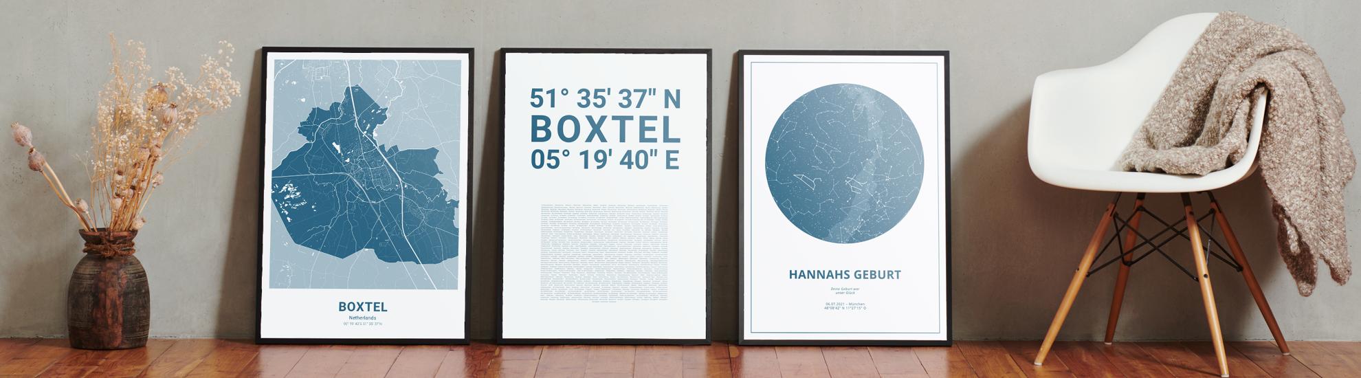 Wähle Farben und Layouts, die perfekt zu dir passen. Ob als klassische Karte in schwarz-weiß oder in modernen Farben. Bei Cartida kannst du ein Design in deinen Lieblingsfarben wählen. Erstelle eine Variante von Boxtel, die perfekt zu dir und deiner Wohnung passt.