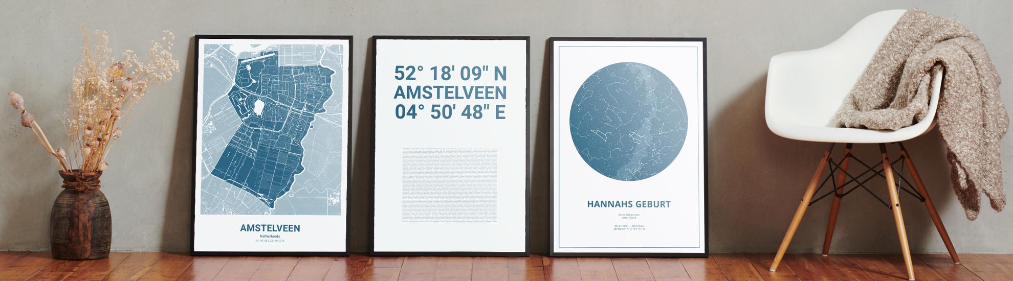 Wähle Farben und Layouts, die perfekt zu dir passen. Ob als klassische Karte in schwarz-weiß oder in modernen Farben. Bei Cartida kannst du ein Design in deinen Lieblingsfarben wählen. Erstelle eine Variante von Amstelveen, die perfekt zu dir und deiner Wohnung passt.