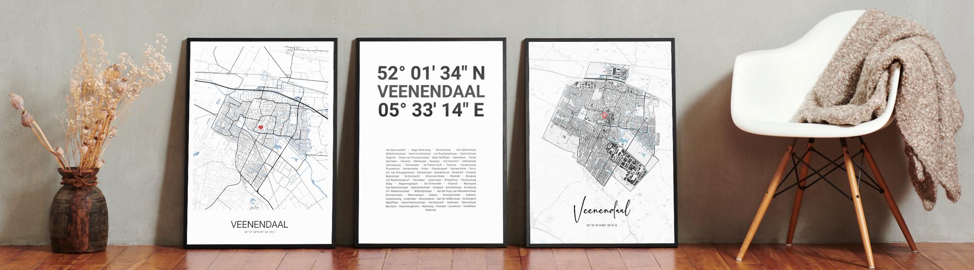 Wähle Farben und Layouts, die perfekt zu dir passen. Ob als klassische Karte in schwarz-weiß oder in modernen Farben. Bei Cartida kannst du ein Design in deinen Lieblingsfarben wählen. Erstelle eine Variante von Veenendaal, die perfekt zu dir und deiner Wohnung passt.