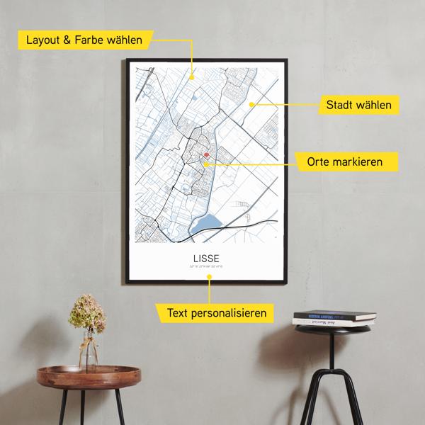 Wähle Farben und Layouts, die perfekt zu dir passen. Ob als klassische Karte in schwarz-weiß oder in modernen Farben. Bei Cartida kannst du ein Design in deinen Lieblingsfarben wählen. Erstelle eine Variante von Lisse, die perfekt zu dir und deiner Wohnung passt.