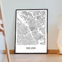 Bilder, die Geschichten erzählen über Reisen, Liebe und Erinnerungen. Wir bei Cartida haben deine Stadtkarte von San Jose. Dargestellt als Schwarzplan mit Gebäuden oder als Minimal City Map mit filigranen Straßennetz.