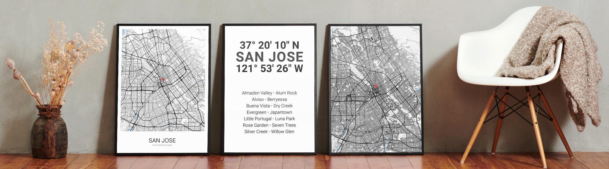 Wähle Farben und Layouts, die perfekt zu dir passen. Ob als klassische Karte in schwarz-weiß oder in modernen Farben. Bei Cartida kannst du ein Design in deinen Lieblingsfarben wählen. Erstelle eine Variante von San Jose, die perfekt zu dir und deiner Wohnung passt.