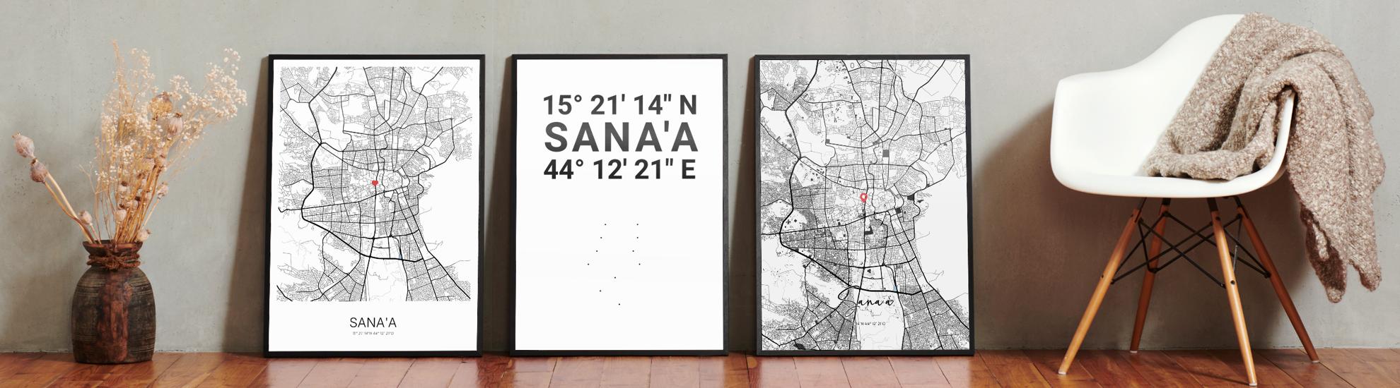 Wähle Farben und Layouts, die perfekt zu dir passen. Ob als klassische Karte in schwarz-weiß oder in modernen Farben. Bei Cartida kannst du ein Design in deinen Lieblingsfarben wählen. Erstelle eine Variante von Sana'a, die perfekt zu dir und deiner Wohnung passt.