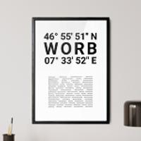 Zahlen, die die Welt bedeuten. Erstelle jetzt dein persönliches Koordinaten-Kunstwerk von deiner Lieblingsstadt. Entscheide selbst, ob Stadtteile, Straßen oder ganz eigene Texte abgedruckt werden. Perfekt als Geschenk zum Einzug oder für die eigenen vier Wände.