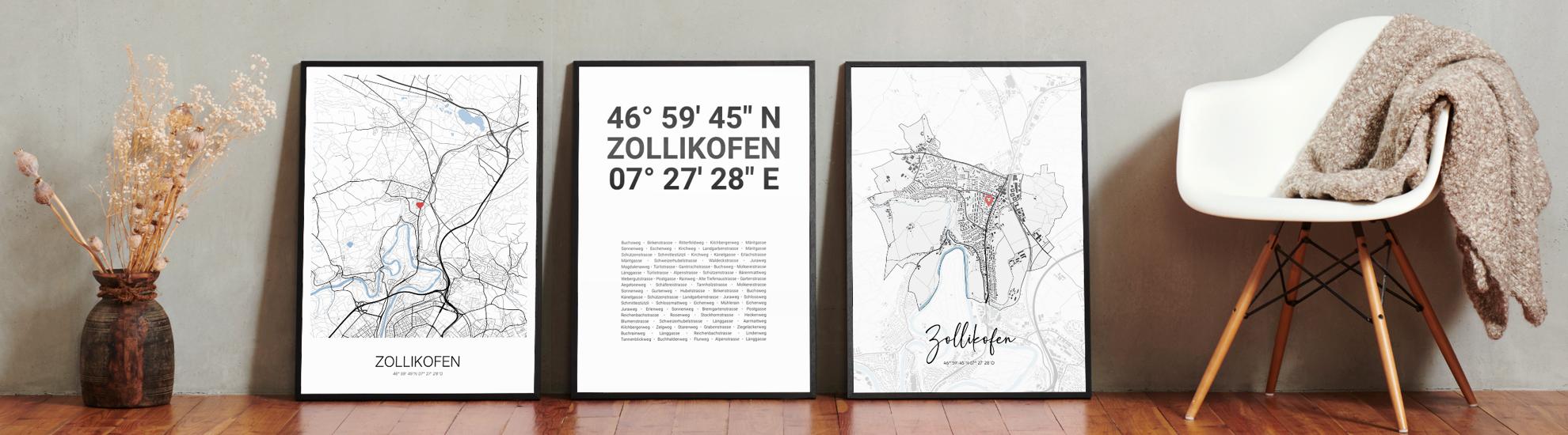 Wähle Farben und Layouts, die perfekt zu dir passen. Ob als klassische Karte in schwarz-weiß oder in modernen Farben. Bei Cartida kannst du ein Design in deinen Lieblingsfarben wählen. Erstelle eine Variante von Zollikofen, die perfekt zu dir und deiner Wohnung passt.