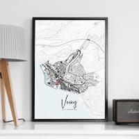Bilder, die Geschichten erzählen über Reisen, Liebe und Erinnerungen. Wir bei Cartida haben deine Stadtkarte von Vevey in Vaud, Schweiz. Dargestellt als Schwarzplan mit Gebäuden oder als Minimal City Map mit filigranen Straßennetz.