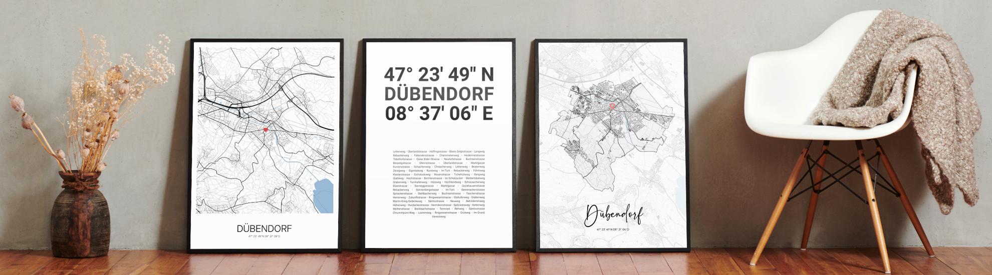 Wähle Farben und Layouts, die perfekt zu dir passen. Ob als klassische Karte in schwarz-weiß oder in modernen Farben. Bei Cartida kannst du ein Design in deinen Lieblingsfarben wählen. Erstelle eine Variante von Dübendorf, die perfekt zu dir und deiner Wohnung passt.